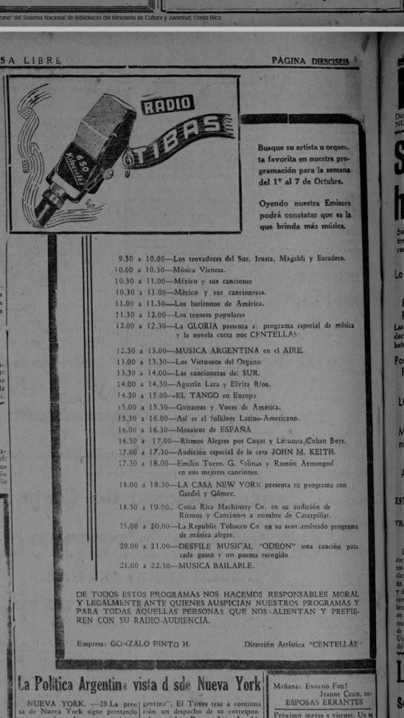 Aquellas emisoras eran propiedad de Gonzalo Pinto Hernández y no se ubicaban en Tibás, sino en las cercanías de lo que después fue el Hospital Nacional de Niños. Doble Check encontró evidencia de que, a partir de 1940, las estaciones de Pinto aparecían en un anuario internacional bajo las siglas TIGPH, y su potencia se limitaba a 500 y a 1.000 watts.