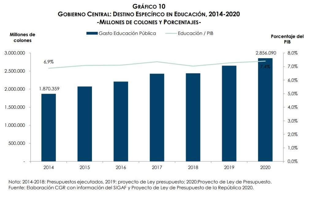 El diario usa como referencia el Informe Técnico del Proyecto de Ley del Presupuesto Ordinario y Extraordinario de la República de la CGR que incluye en su página 74 el siguiente gráfico: